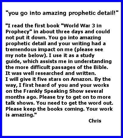 The answers to these questions and many others not mentioned here, are to profound and interwoven thorough multiple Biblical prophecies in the Bible, to give a quick fix. Their answers found within the "Voice Of The Prophets" book series and in the DVD "The Revenge Of The Czar's" will astound, inform, shock and even make you think about events that have been waiting to be fulfilled for thousand's of years, but you don't have to wait any longer!